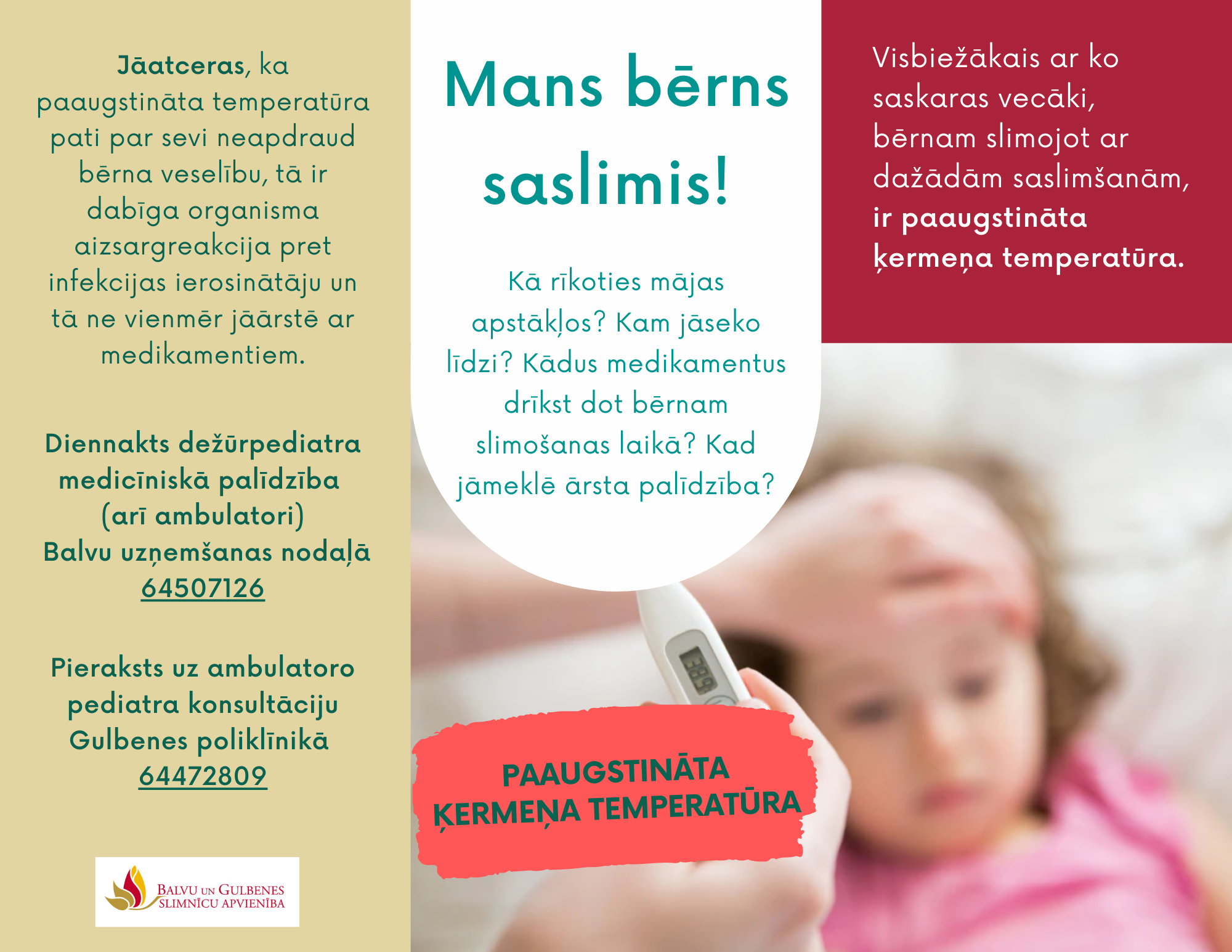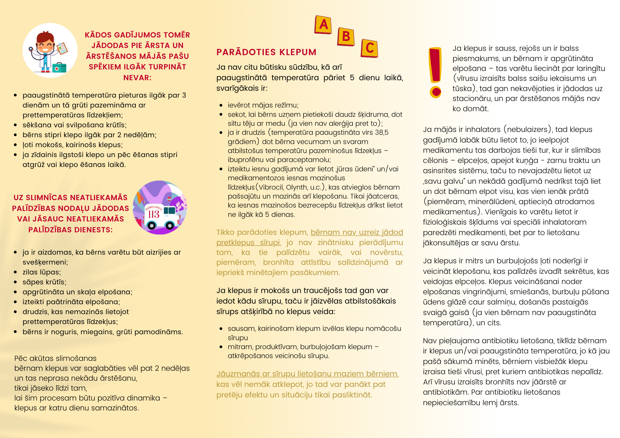 SIA “Balvu un Gulbenes slimnīcu apvienība” pediatra izstrādāti bukleti var Jums būt noderīgi, kad nav īsti skaidrs rīcības plāns. Cik ilgi var āsrtēties mājas apstākļos?