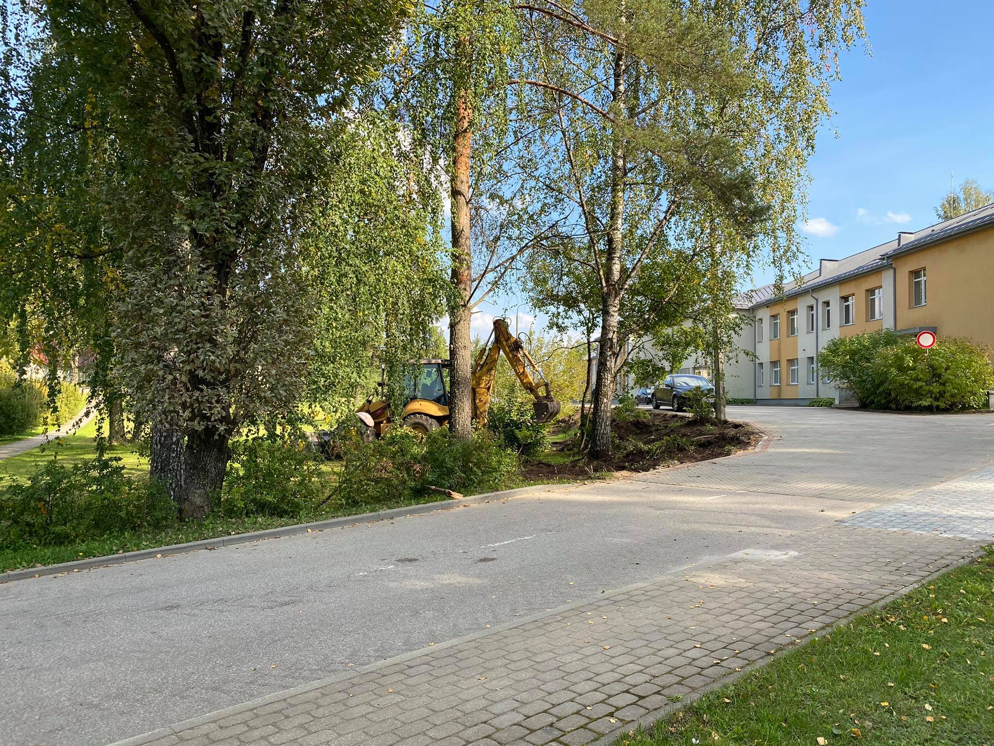 Pie Gulbenes slimnīcas notiek teritorijas iekārtošanas darbi vides objekta uzstādīšanai