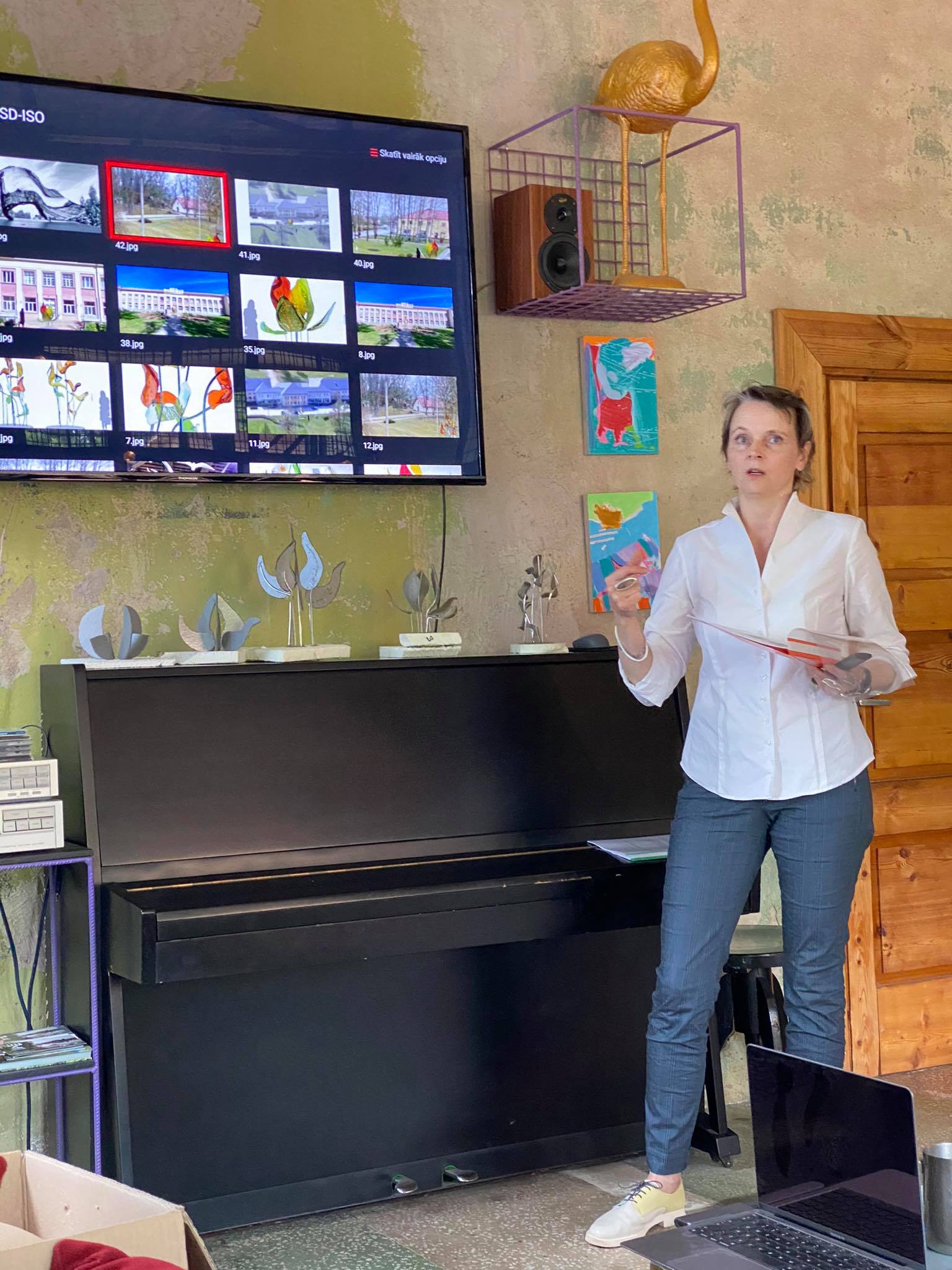 14.oktobrī klātienē Gulbenē bija ieradusies māksliniece Elizabete Melbārzde, lai apskatītu paveikto un precizētu vides objekta vietu dabā.